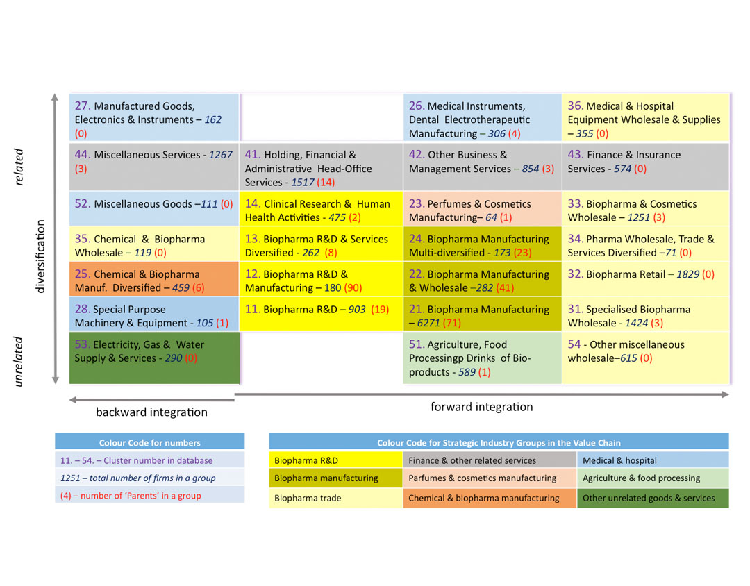 Related diversification and value added chains across all global biopharma parents and subsidiaries