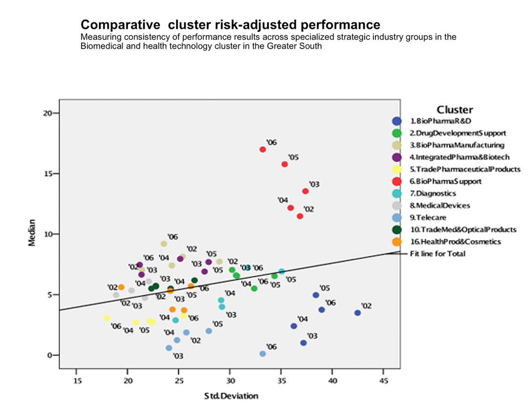 Comparative cluster risk-adjusted performance in biomedical and health technology, UK (2008)