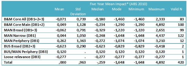Comparison of 5-Year Mean Impact Across Different Segments of the Database